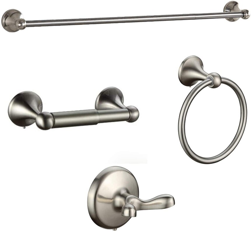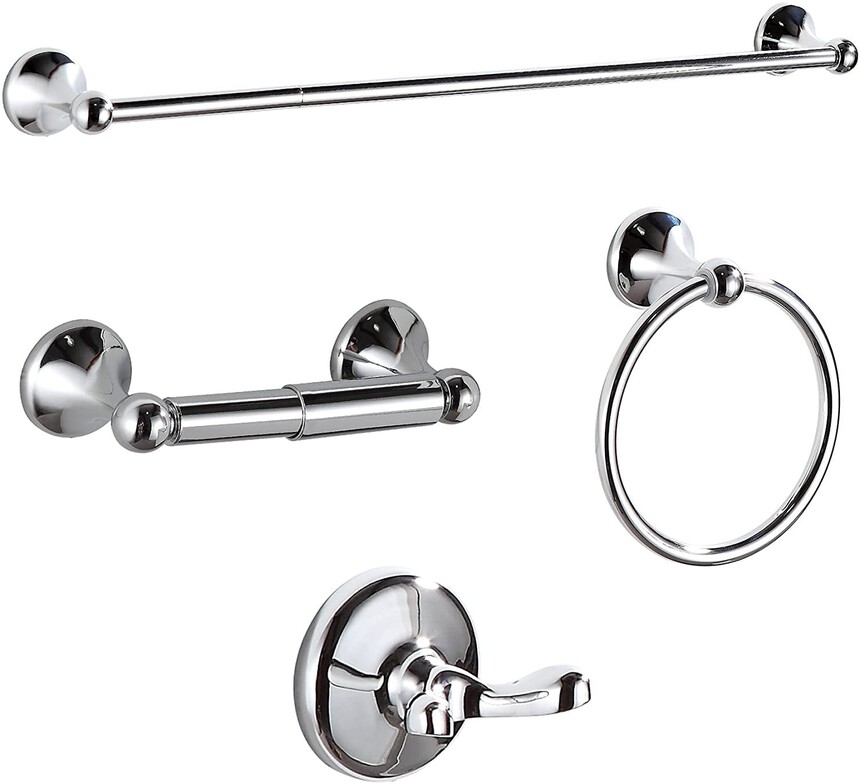 4pcs bath set 18'towel bar,towel ring,paper holder,robe hook Item:6001 material:zinc,steel finish:chrome/satin nickel/black package:color box